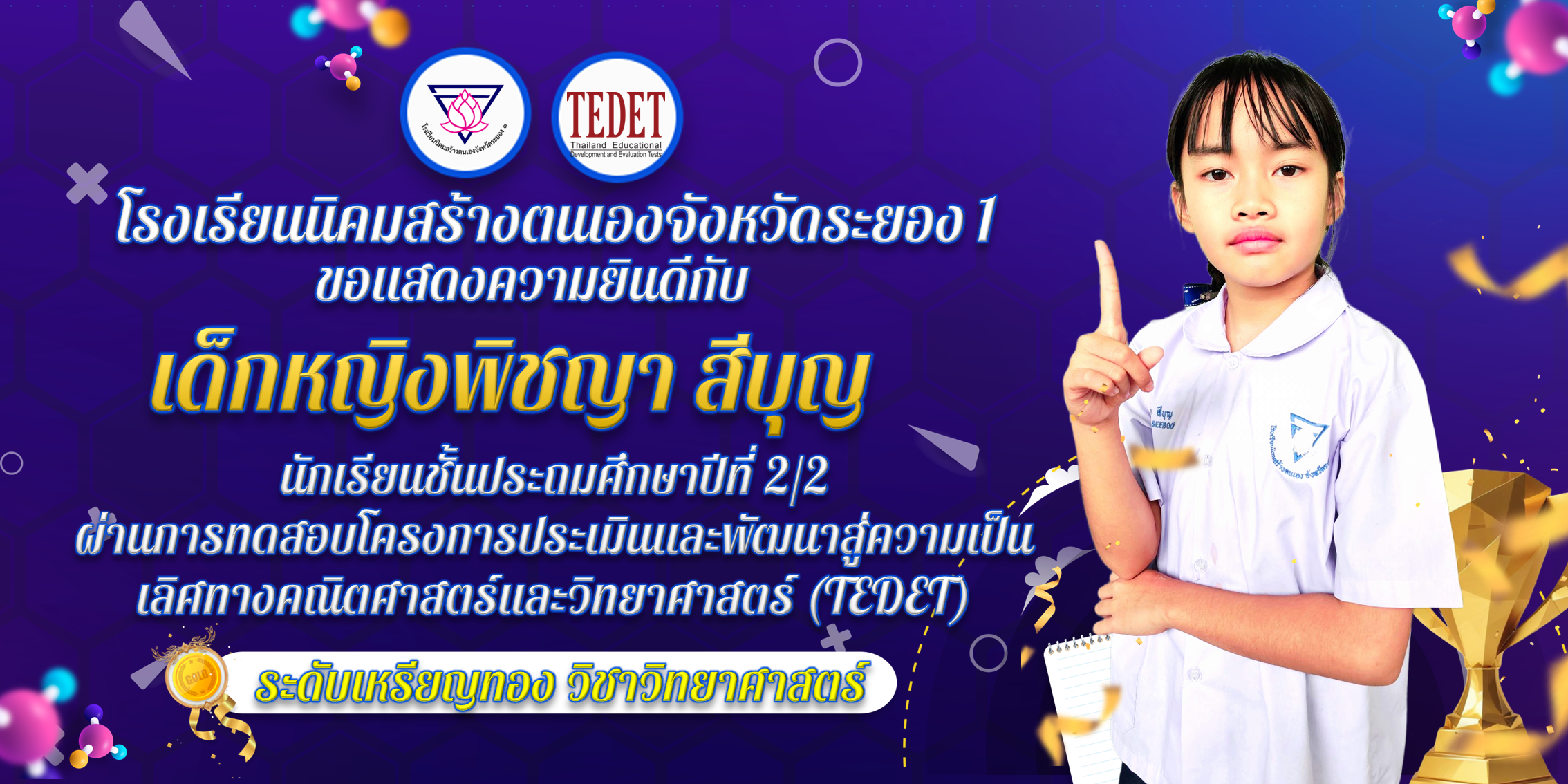 • ขอแสดงความยินดีและชื่นชมกับเด็กหญิงพิชญา สีบุญ ชั้นประถมศึกษาปีที่ 2 ที่ได้รับรางวัลระดับเหรียญทอง วิชาวิทยาศาสตร์ ชั้นประถมศึกษาปีที่ 2 ในโครงการประเมินและพัฒนาสู่ความเป็นเลิศทางคณิตศาสตร์และวิท