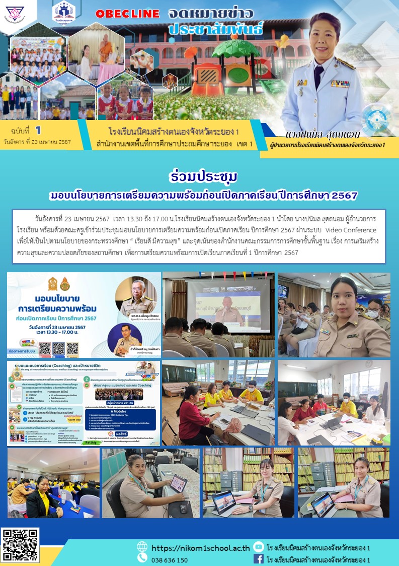 เข้าร่วมประชุมมอบนโยบายการเตรียมความพร้อมก่อนเปิดภาคเรียน ปีการศึกษา 2567