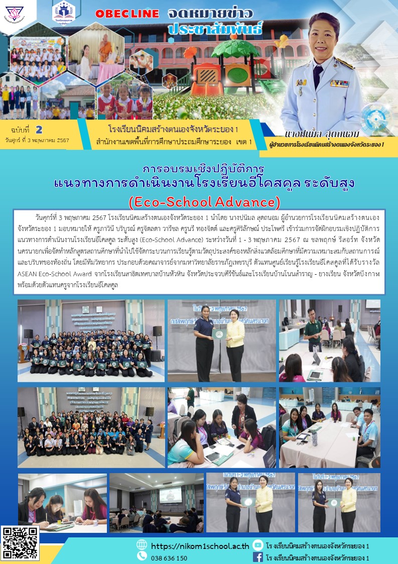 เข้าร่วมการจัดฝึกอบรมเชิงปฏิบัติการแนวทางการดำเนินงานโรงเรียนอีโคสคูล ระดับสูง (Eco-School Advance)