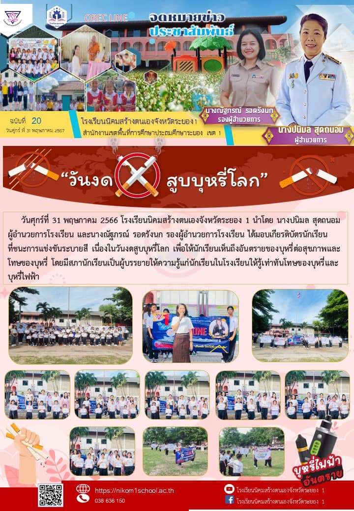 มอบเกียรติบัตรนักเรียนที่ชนะการแข่งขันระบายสี เนื่องในวันงดสูบบุหรี่โลก