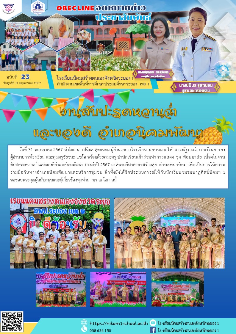 เข้าร่วมทำการแสดง ชุด ฟ่อนมาลัย เนื่องในงานสับปะรดหวานฉ่ำและของดีอำเภอนิคมพัฒนา ประจำปี 2567