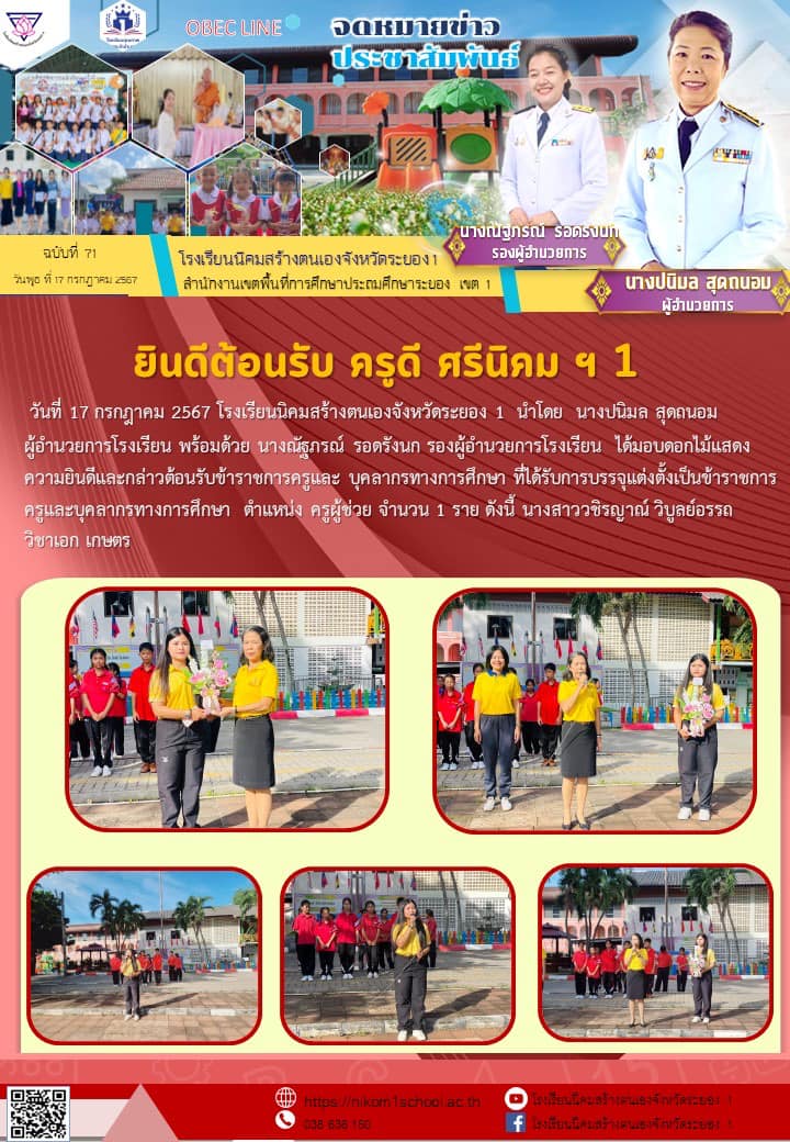 มอบดอกไม้แสดงความยินดีและกล่าวต้อนรับข้าราชการครูและ บุคลากรทางการศึกษา ที่ได้รับการบรรจุแต่งตั้งเป็นข้าราชการครูและบุคลากรทางการศึกษา ตำแหน่ง ครูผู้ช่วย