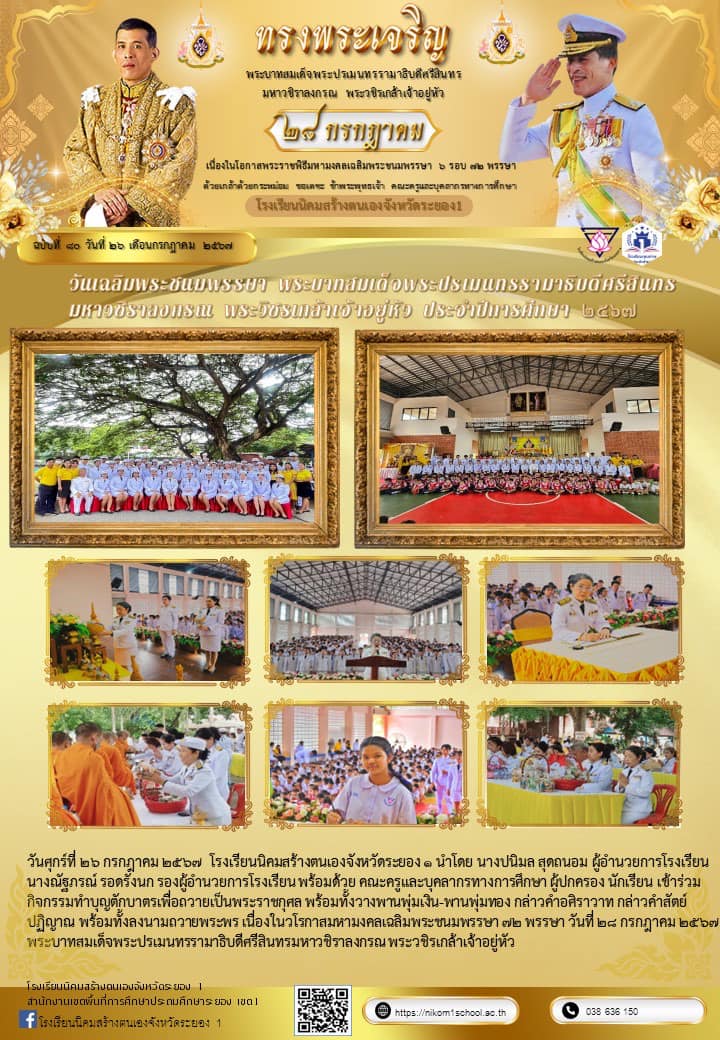• วันเฉลิมพระชนมพรรษาพระบาทสมเด็จพระปรเมนทรรามาธิบดีศรีสินทรมหาวชิราลงกรณ พระวชิรเกล้าเจ้าอยู่หัว