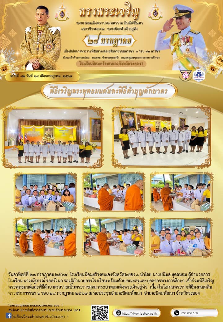 ร่วมพิธีเจริญพระพุทธมนต์และพิธีตักบาตรถวายเป็นพระราชกุศล พระบาทสมเด็จพระเจ้าอยู่หัว เนื่องในโอกาสพระราชพิธีมงคลเฉลิมพระชนมพรรษา 6 รอบ 28 กรกฎาคม 2567