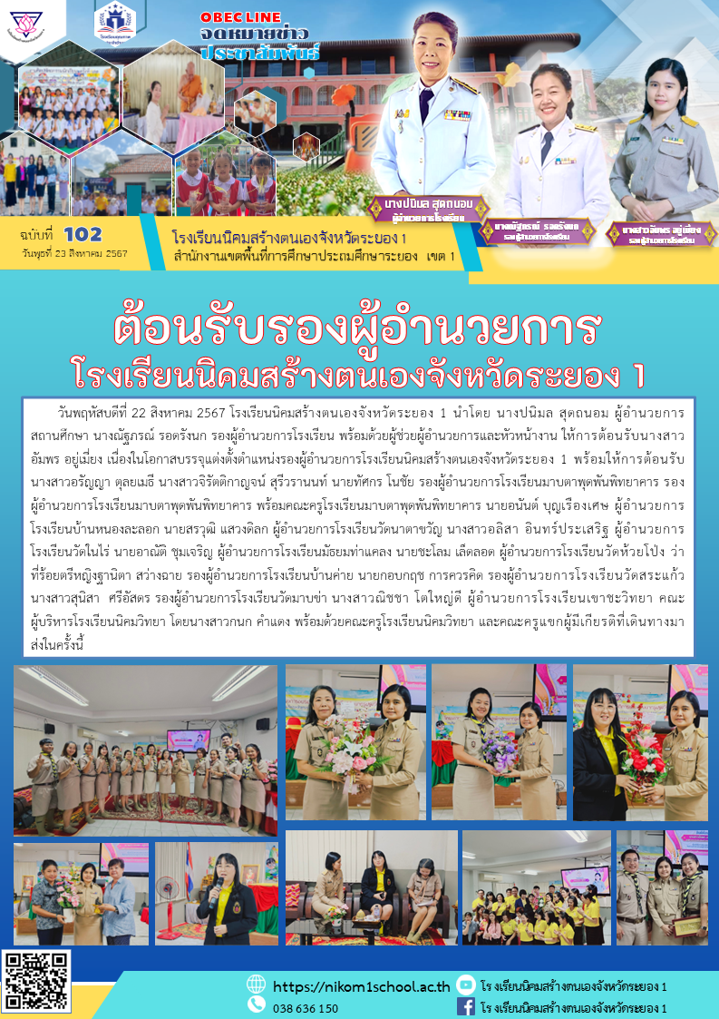 ต้อนรับนางสาวอัมพร อยู่เมี่ยง เนื่องในโอกาสบรรจุแต่งตั้งตำแหน่งรองผู้อำนวยการโรงเรียนนิคมสร้างตนเองจังหวัดระยอง 1