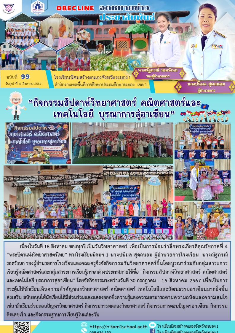 • ขอแสดงความยินดีและชื่นชมกับเด็กหญิงพิชญา สีบุญ ชั้นประถมศึกษาปีที่ 2 ที่ได้รับรางวัลระดับเหรียญทอง วิชาวิทยาศาสตร์ ชั้นประถมศึกษาปีที่ 2 ในโครงการประเมินและพัฒนาสู่ความเป็นเลิศทางคณิตศาสตร์และวิท