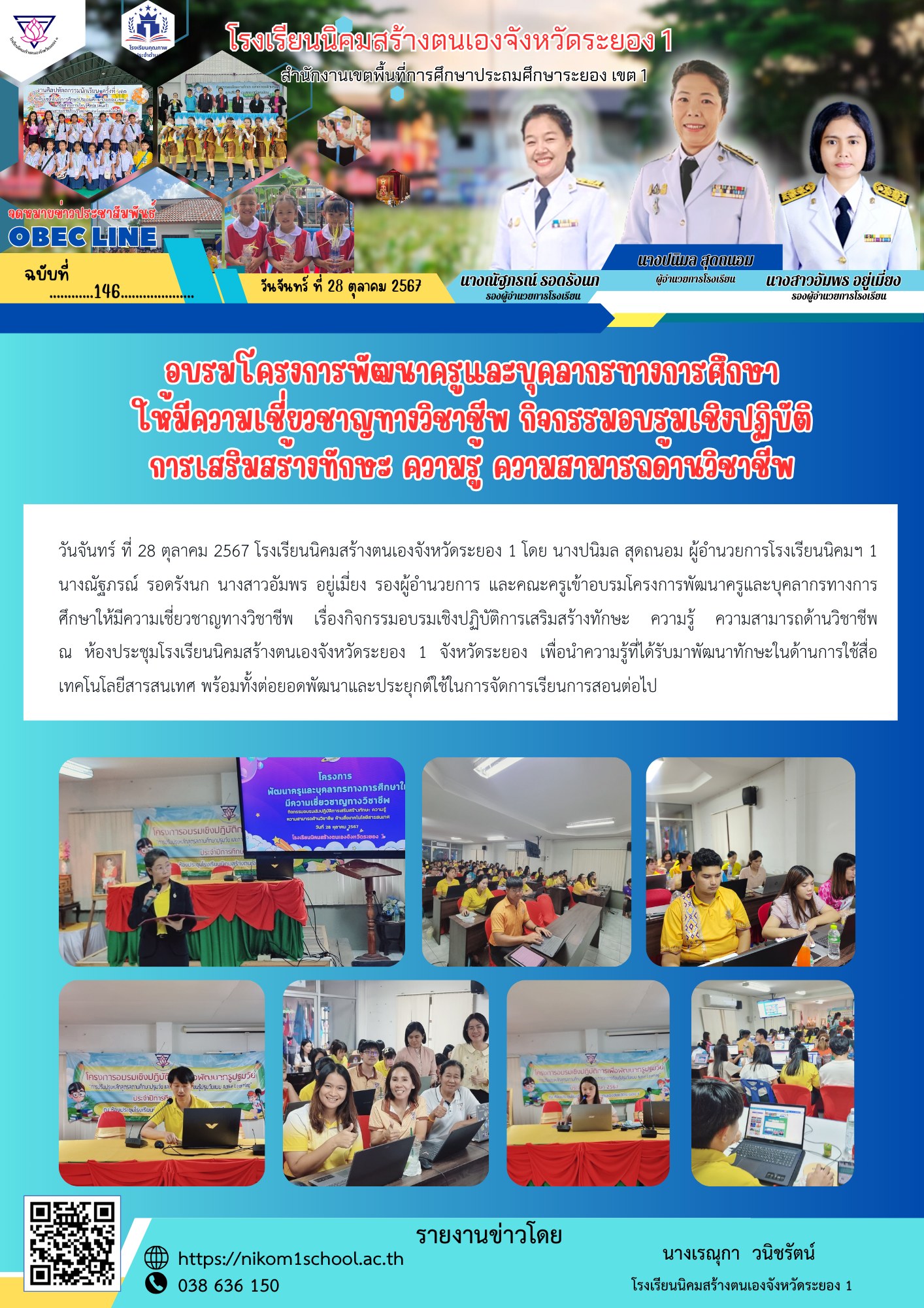 อบรมโครงการพัฒนาครูและบุคลากรทางการศึกษาให้มีความเชี่ยวชาญทางวิชาชีพ