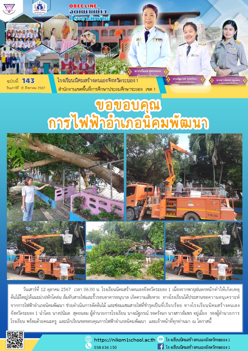 ขอขอบคุณการไฟฟ้าอำเภอนิคมพัฒนา และเจ้าหน้าที่