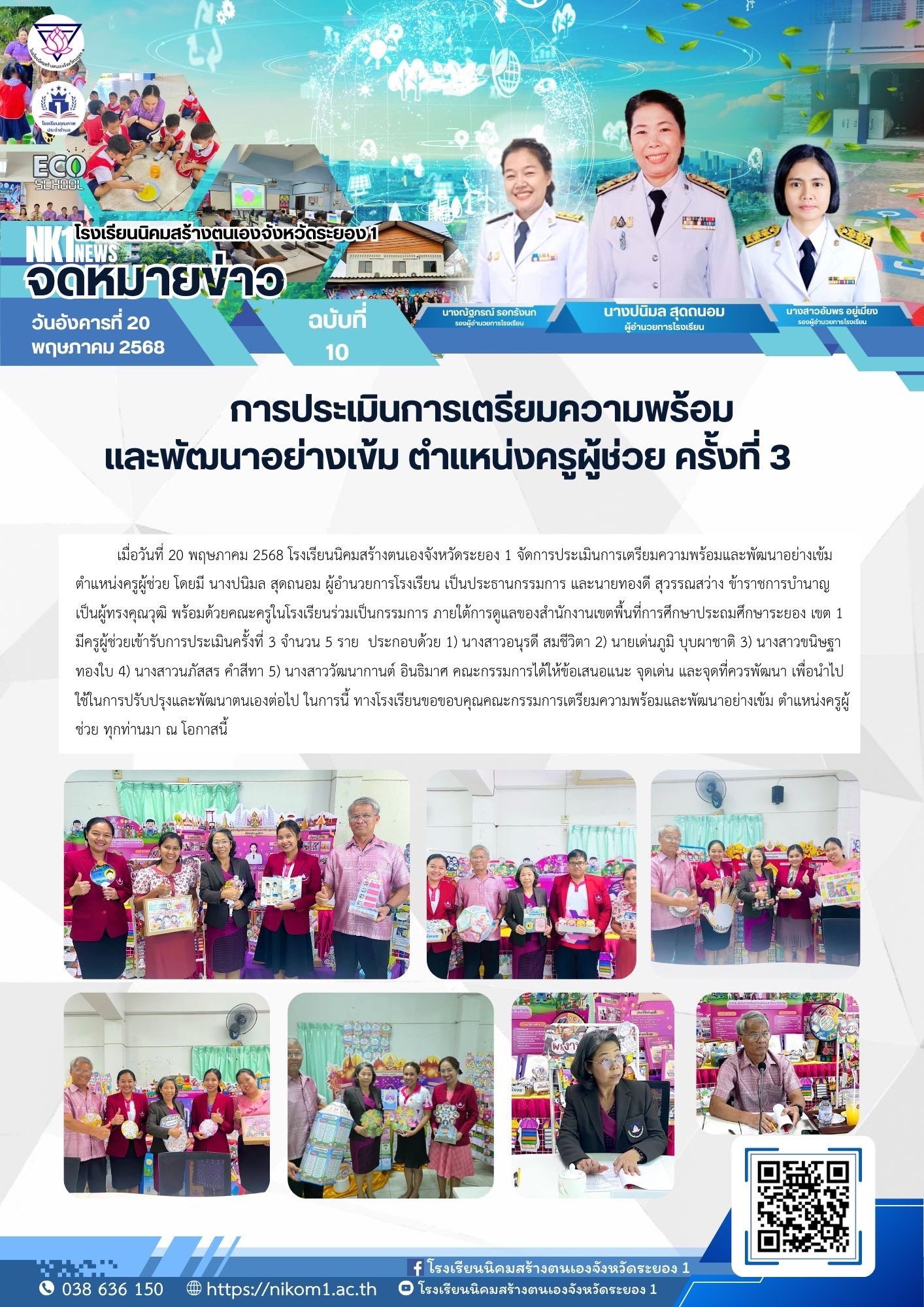 การประเมินการเตรียมความพร้อมและพัฒนาอย่างเข้ม ตำแหน่งครูผู้ช่วย