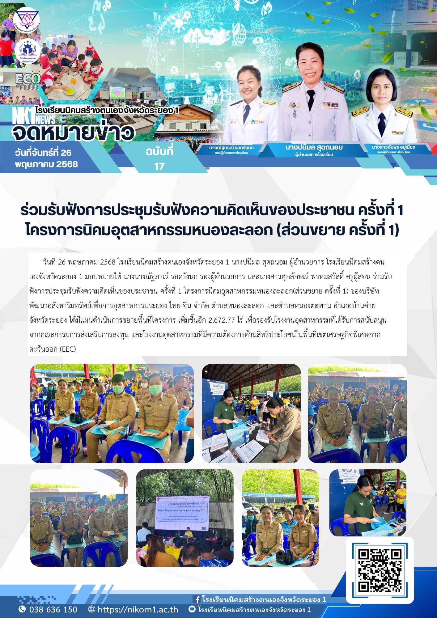 ร่วมรับฟังการประชุมรับฟังความคิดเห็นของประชาชน ครั้งที่ 1 โครงการนิคมอุตสาหกรรมหนองละลอก(ส่วนขยาย ครั้งที่ 1) ของบริษัท พัฒนาอสังหาริมทรัพย์เพื่อการอุตสาหกรรมระยอง ไทย-จีน จำกัด