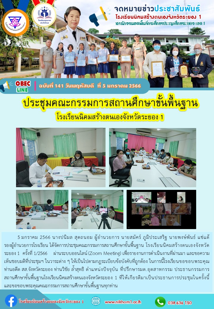 ประชุมคณะกรรมการสถานศึกษาขั้นพื้นฐาน โรงเรียนนิคมสร้างตนเองจังหวัดระยอง 1 ครั้งที่ 1/2566 ผ่านระบบออนไลน์ (Zoom Meeting)